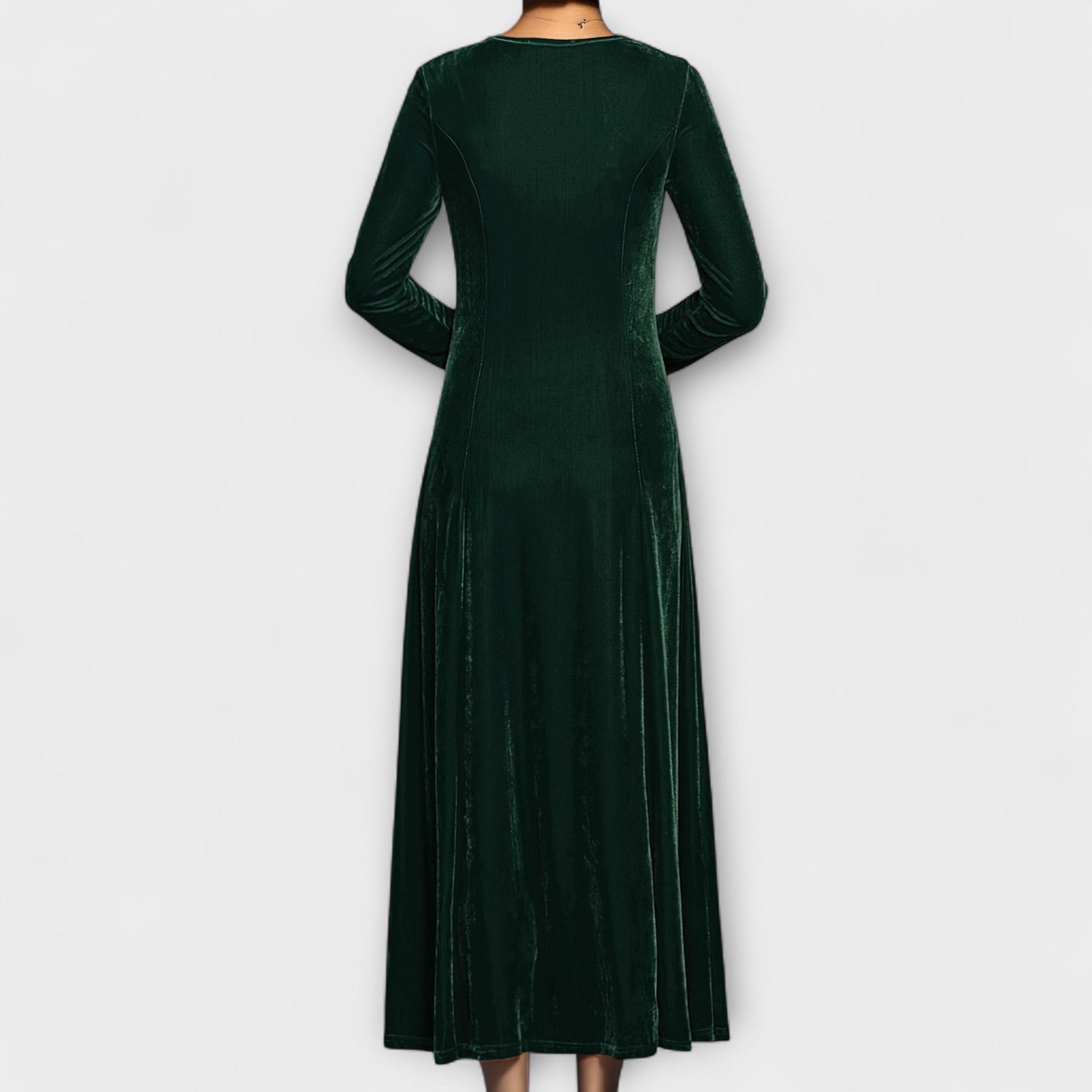 Featuring elegant long sleeves, a fitted bodice, and a flowing A-line skirt, the April dress is perfect for evening events, holiday gatherings, or whenever you want to feel effortlessly chic.