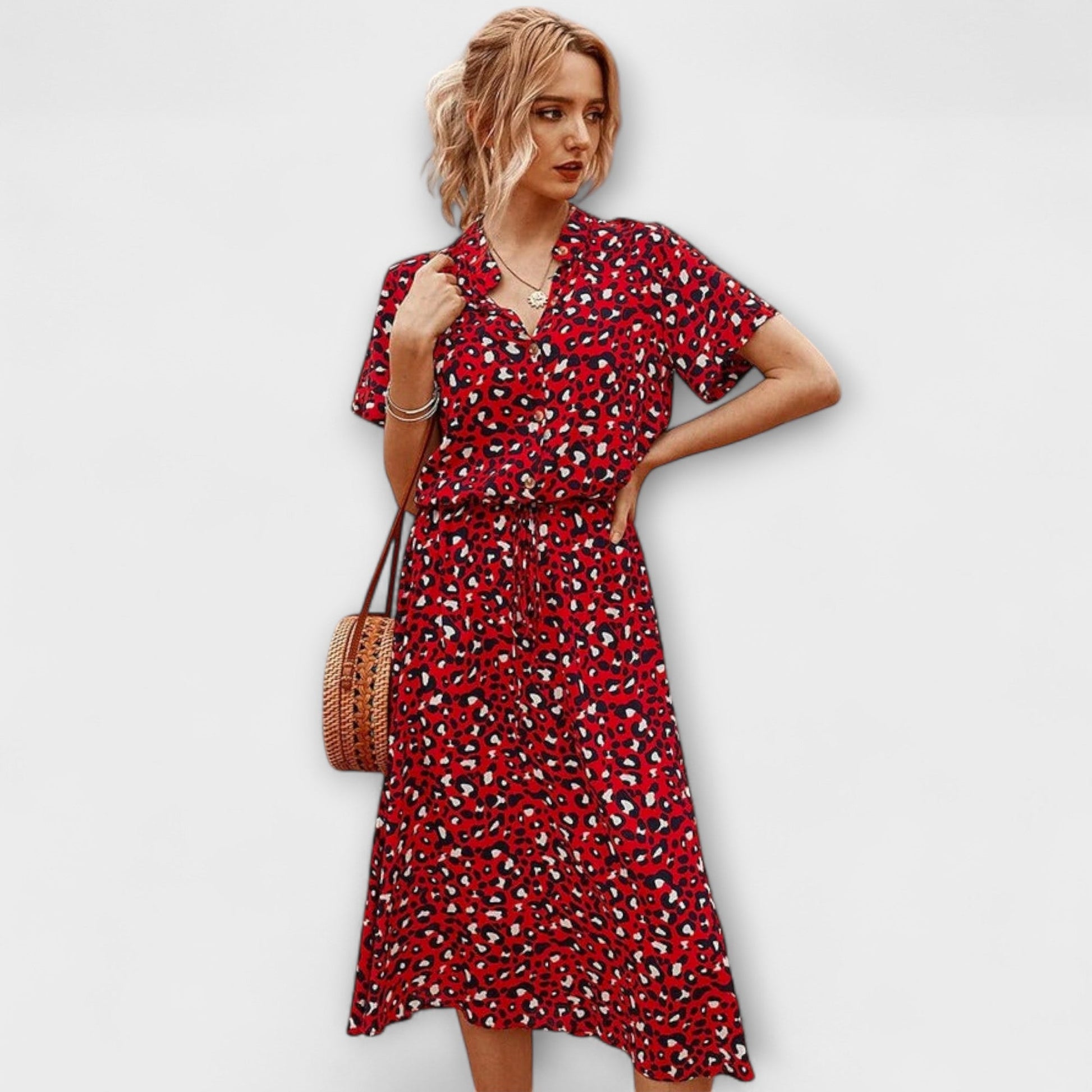 With short sleeves and a button closure, this dress features a timeless design that is perfect for both casual moments and chic occasions. Add the Florine to your wardrobe and feel elegant all day long!